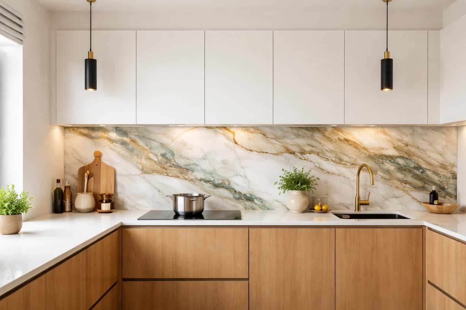 Le choix des couleurs et des motifs dépend en grande partie de la taille de la pièce et de la luminosité disponible. Dans une petite cuisine, les teintes claires et les surfaces réfléchissantes sont à privilégier pour ne pas alourdir l’espace. Dans une cuisine spacieuse et bien éclairée, vous pouvez vous permettre des motifs plus affirmés, des couleurs profondes ou des compositions graphiques audacieuses.