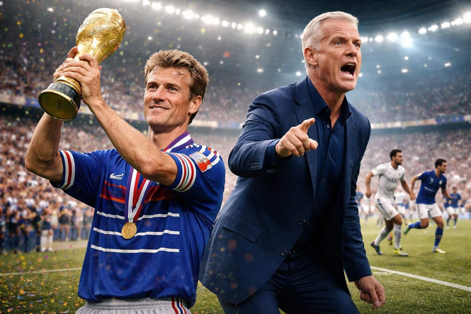 - Avec 103 sélections en bleu, il devient capitaine emblématique et remporte le titre en 1998; sur le banc, il mène les Bleus au triomphe en 2018.