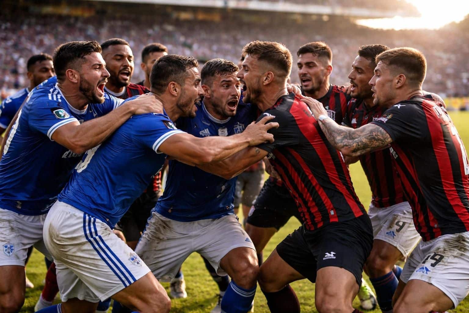 découvrez la mêlée spectaculaire qui a éclaté entre les joueurs de cruzeiro et de l’atlético lors d’un match intense au brésil, révélant des tensions fortes sur le terrain.